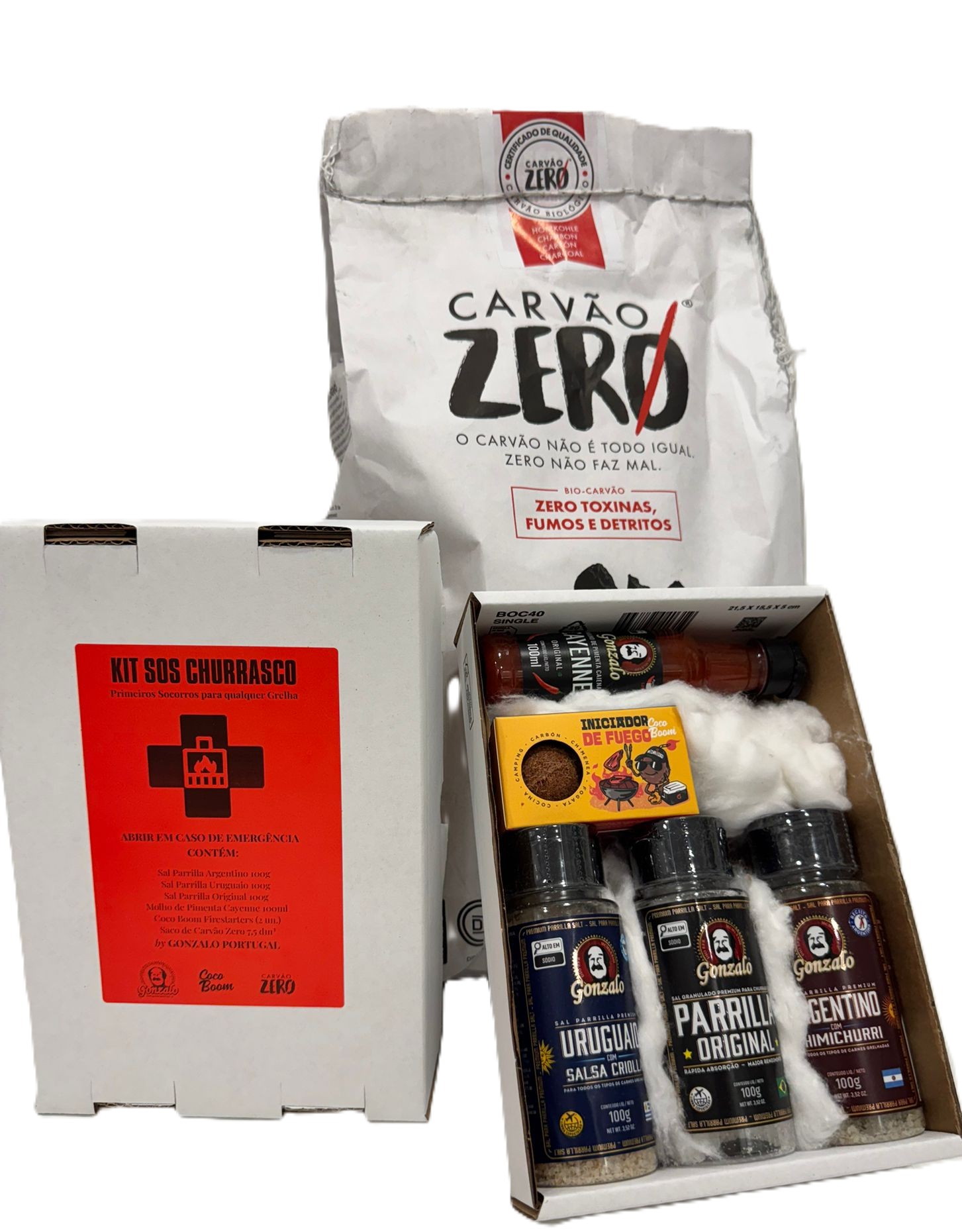 Quando o plano é grelhar e o tempo é curto, o KIT SOS CHURRASCO garante tudo o que precisas para salvar a situação: Um iniciador de Fogo á base de fobras de coco, carvão eficiente, três sais premium para qualquer tipo de carne e um molho que acorda qualquer grelha.