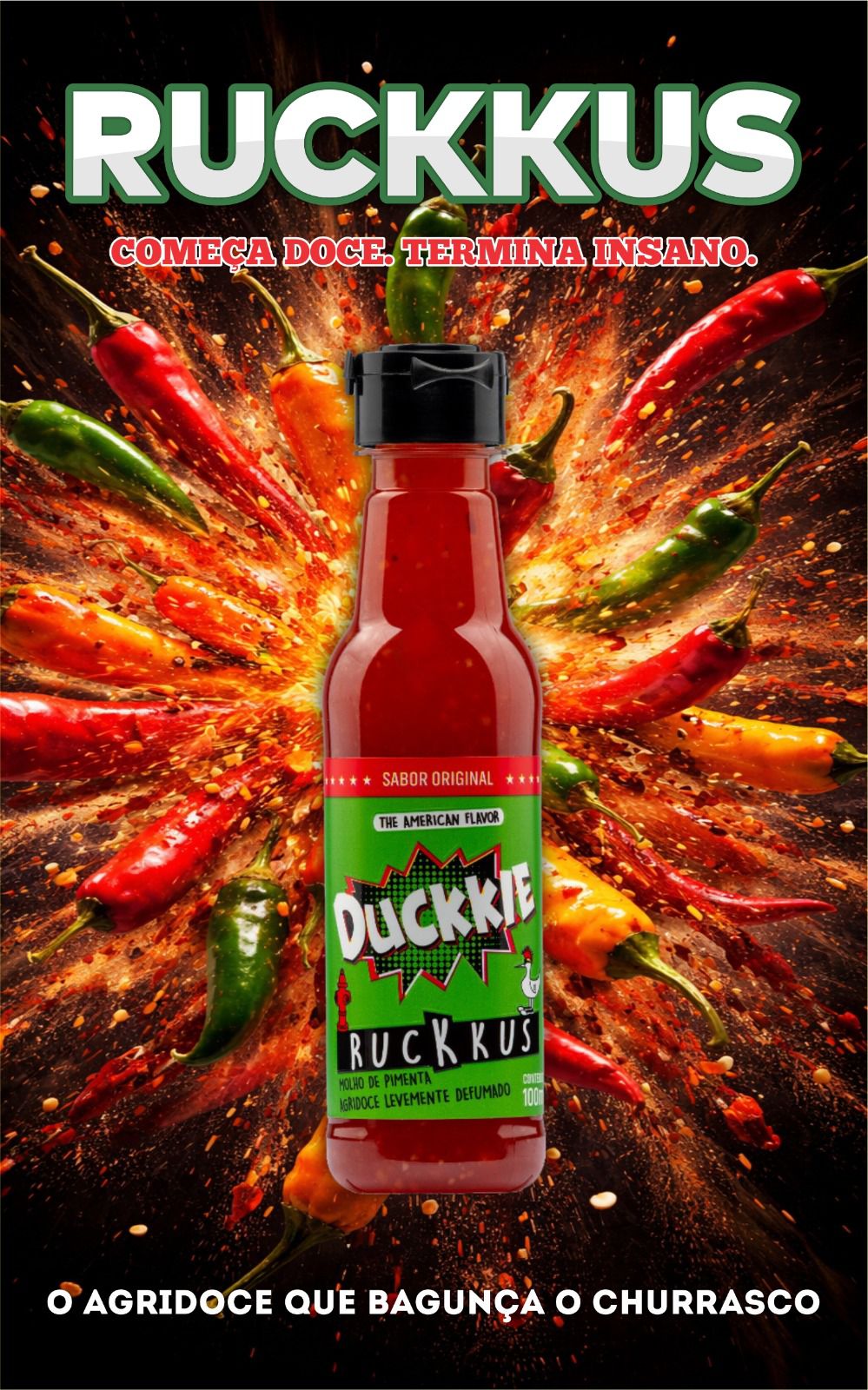 O Duckkie Ruckkus Agridoce é a combinação perfeita entre o picante envolvente da pimenta e a suavidade equilibrada do agridoce. Um molho com identidade forte, pensado para quem procura intensidade de sabor sem perder harmonia no paladar.